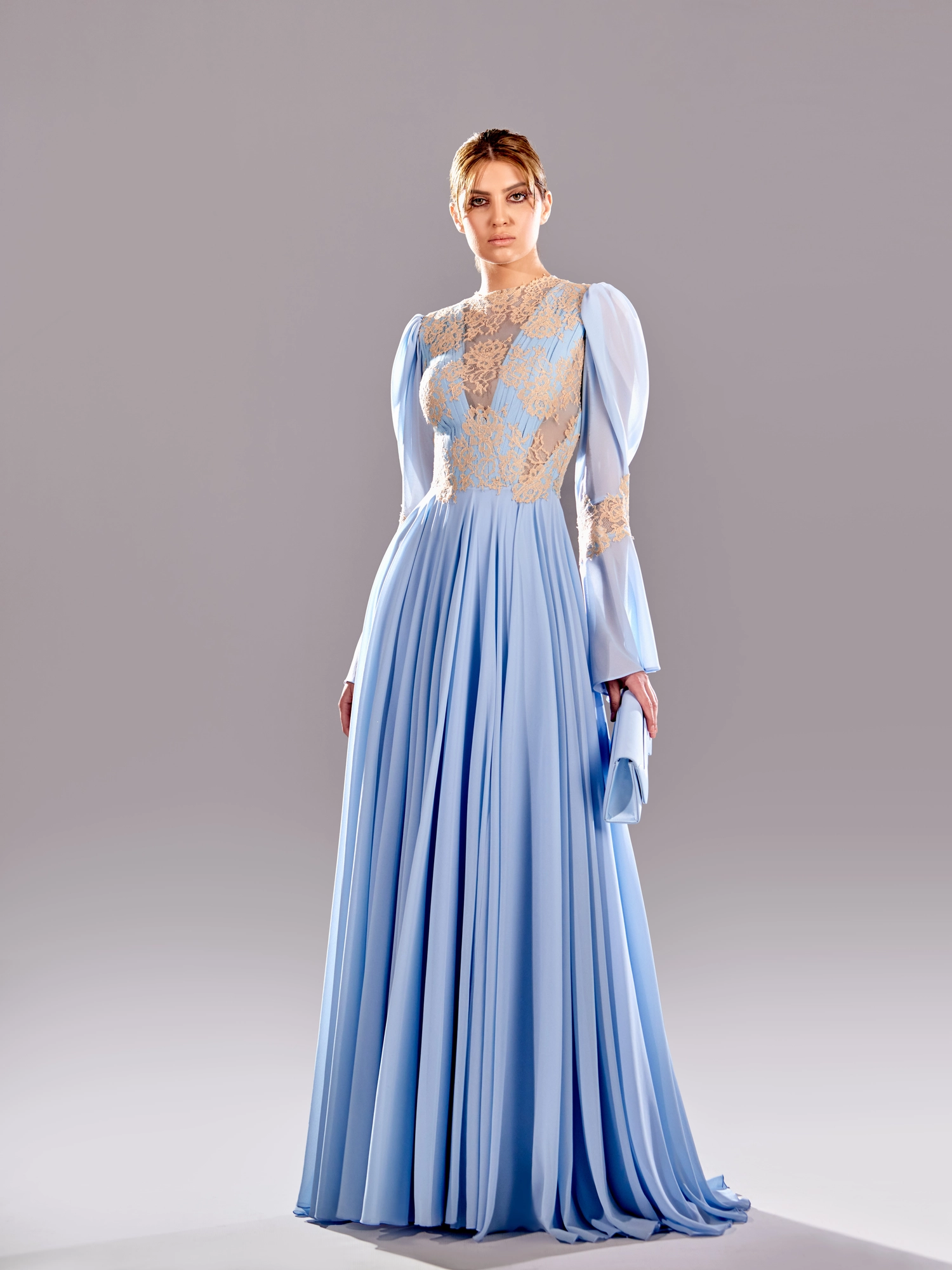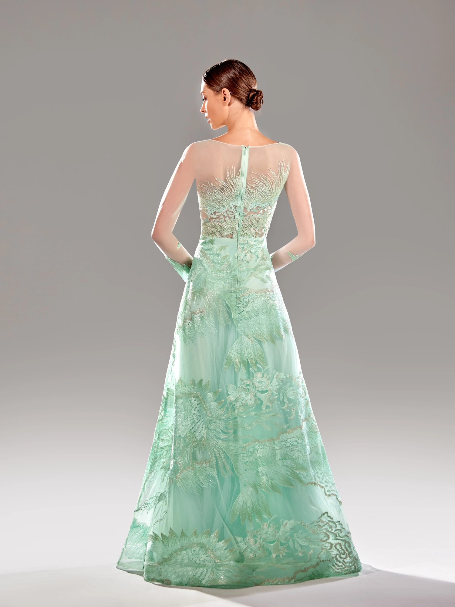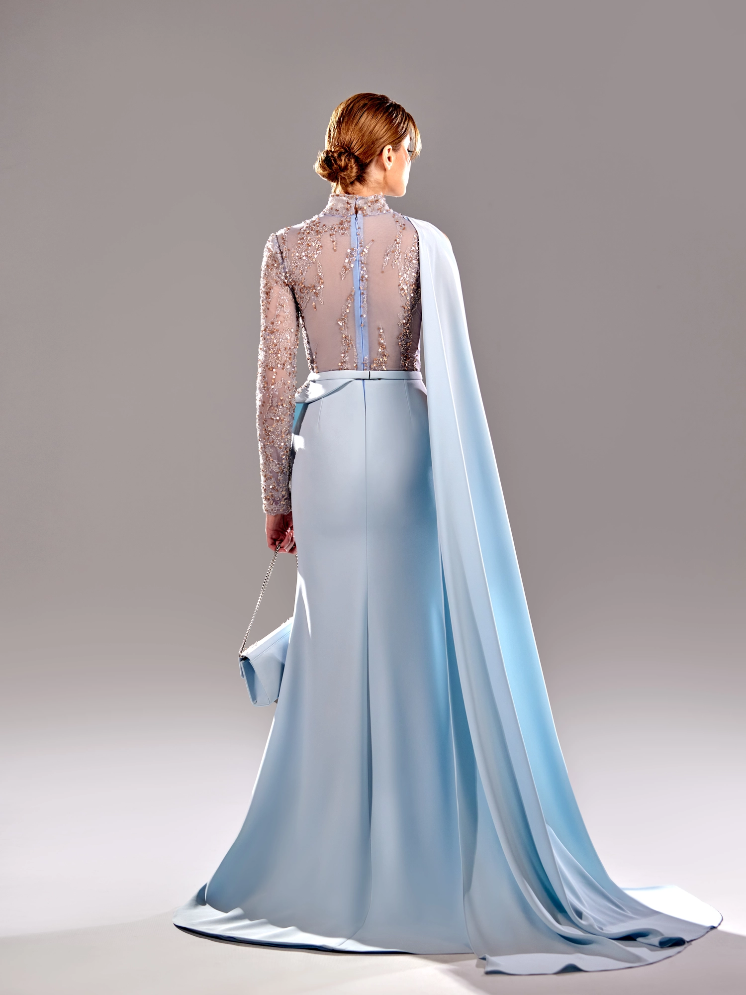 SS 98 - Marrocain Crepe With Embroidery Sleeve And Cap Sleeves